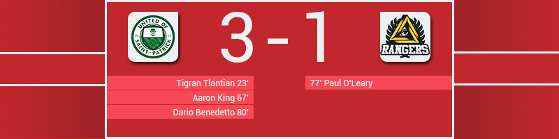 Saint-Patrick recevait les Asgard Rangers pour débuter la phase retour. Les locaux se devaient de soigner leur différence de but pour se mettre à l'abri d'une défaite à Warwickal. Après quelques occasions (non cadrées pour la plupart), c'est Tigran Tlantian qui ouvre le score pour les Leprechauns : alors que Benedetto voit son coup franc repoussé par le mur, le milieu n'hésite pas et prend sa chance juste à l'extérieur de la surface. Saint-Patrick contrôle et on ne verra rien d'intéressant jusqu'à la mi-temps. Saint-Patrick se procure quelques occasions, mais le gardien des Rangers ne se laisse pas déborder par les trop timides offensives des locaux. Il faut attendre la 67ème minute de jeu pour qu'Aaron King double marque suite à une combinaison avec Dario Benedetto. A la surpise générale, Paul O'Leary réduit le score dix minutes plus tard sur un coup franc lointain mal jugé par Declan Farrell. Les Leprechauns ont eu un moment de relâchement et l'ont payé le prix cher. Mais Benedetto vient remettre Saint-Patrick à l'abri quelques minutes plus tard suite à une combinaison sur corner. Ce but clos la marque. 3-1 pour Saint-Patrick qui continue son sans faute.