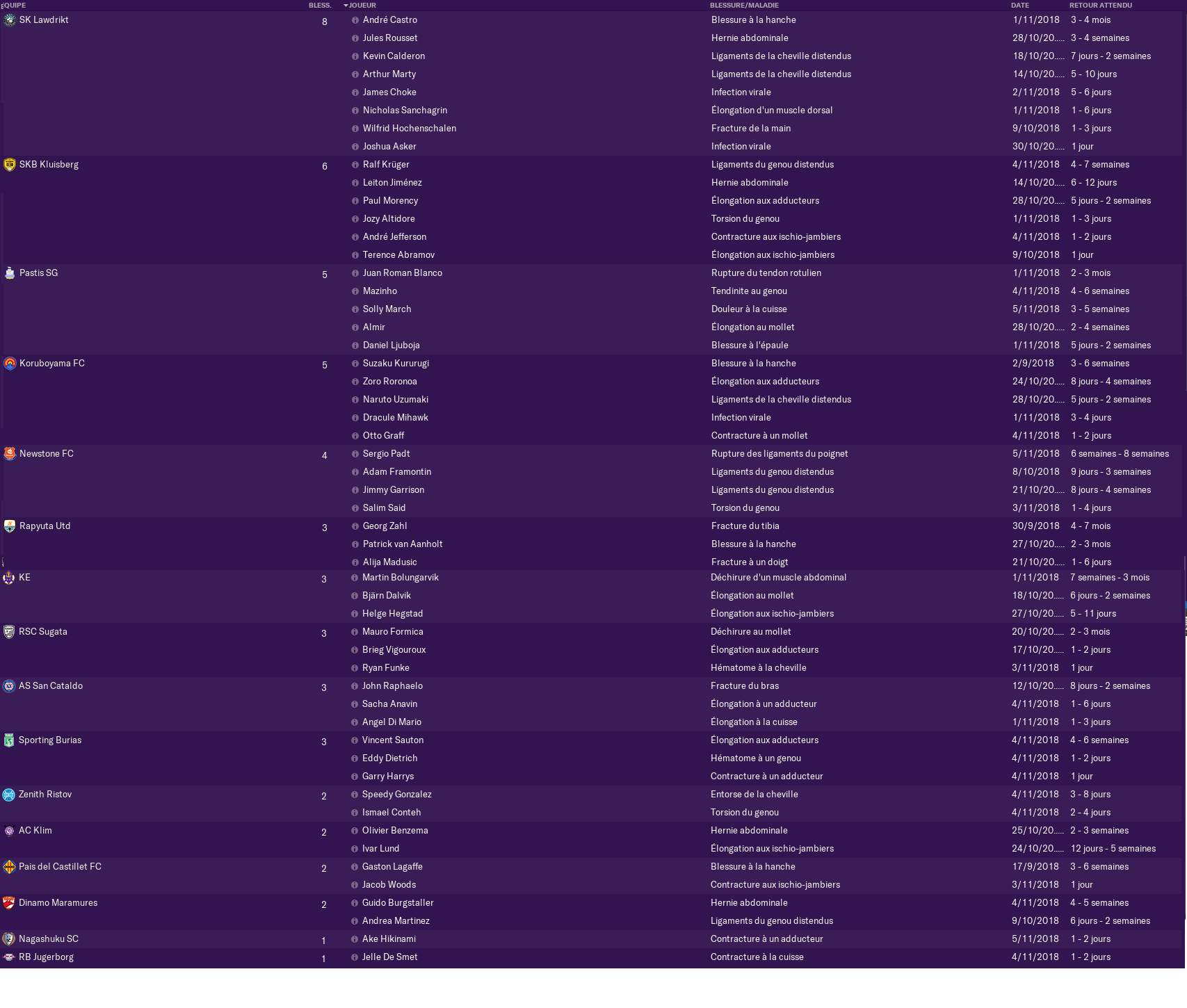 Le point blessures en SL2