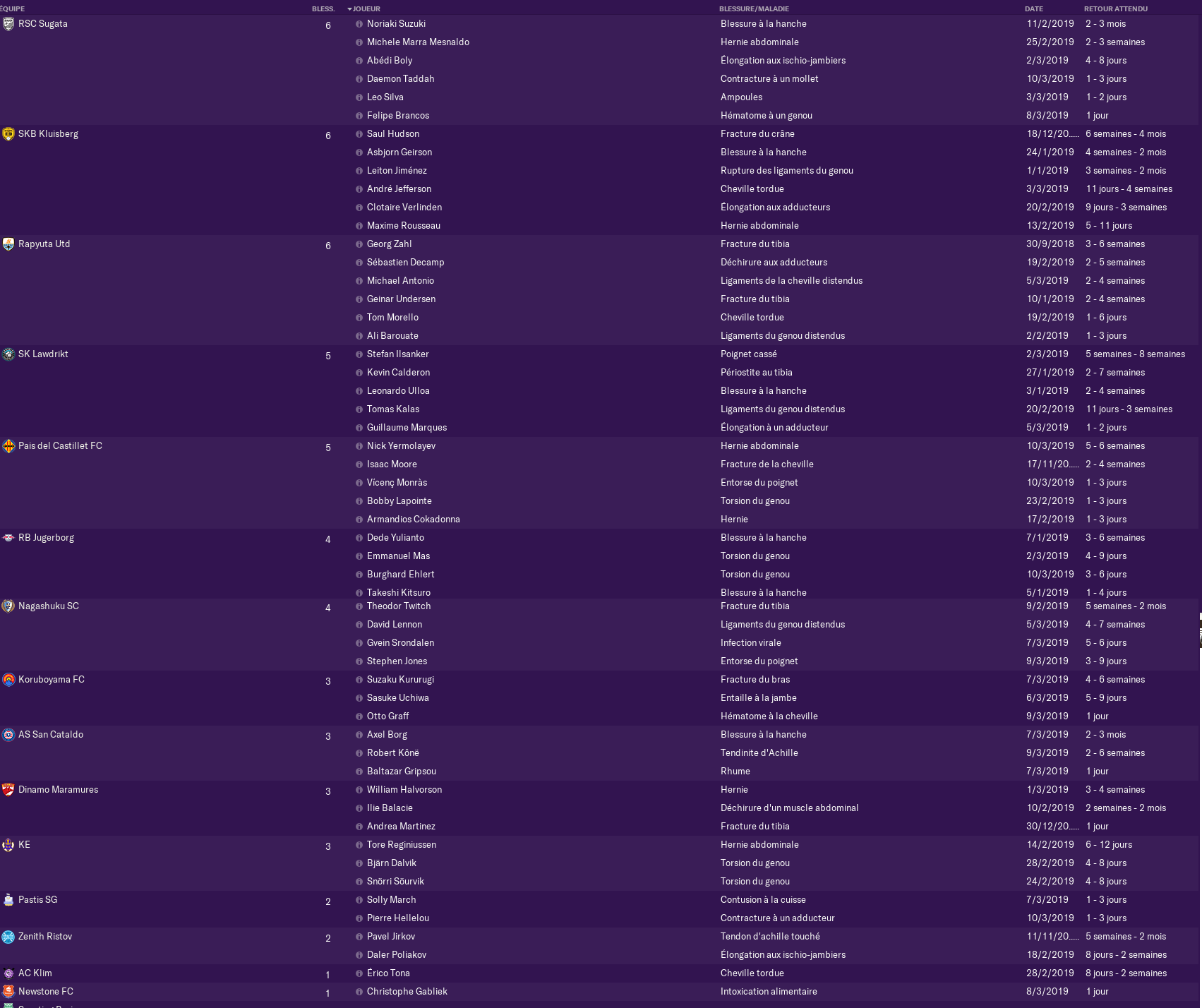 Blessures en SL2 - J26